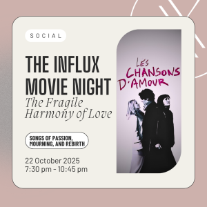 The InFLUX Movie Night – The Fragile Harmony of Love Join us on a cinematic journey, exploring bold stories of transformation, courage, and empowerment. 22 Oct 7:30 pm - 10:45 pm InFLUX IOR 2, Theodor Pallady 287, Bucharest