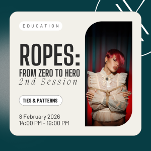 Ropes: From Zero to Hero – 2nd Session A bondage fast-track course that will level you up from your very first tie to finishing off your first suspension beautifully in just 5 sessions. 08 Feb 2:00 pm - 7:00 pm InFLUX IOR 2, Theodor Pallady 287, Bucharest