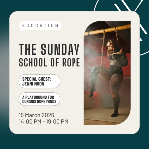 Ropes: From Zero to Hero – 4th Session A bondage fast-track course that will level you up from your very first tie to finishing off your first suspension beautifully in just 5 sessions. 14 Mar 2:00 pm - 7:00 pm InFLUX IOR 2, Theodor Pallady 287, Bucharest