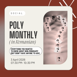 Poly Monthly: Everything You Wanted to Know About Non-Monogamy (But Didn’t Have Anyone to Ask) (in Romanian) Poly Monthly is a social networking event in the non-monogamous community in Bucharest. Every month we get together to discuss an important topic related to non-monogamous relationships. 03 Apr 7:30 pm - 10:30 pm InFLUX IOR 2, Theodor Pallady 287, Bucharest