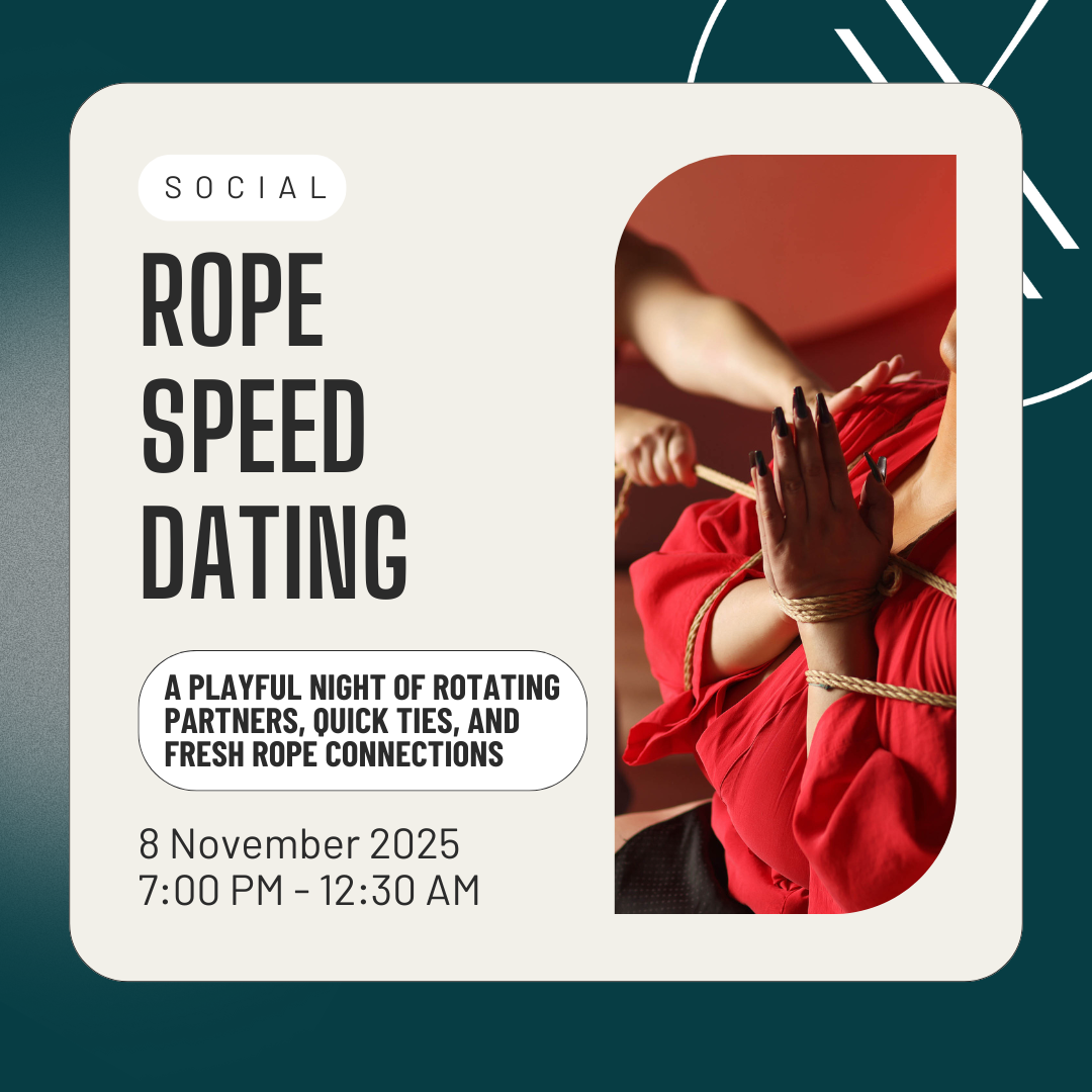Looking for new rope partners? Curious to tie with different people and spark fresh connections? Rope Speed Dating is your chance to mingle, tie, and discover, all in one night.