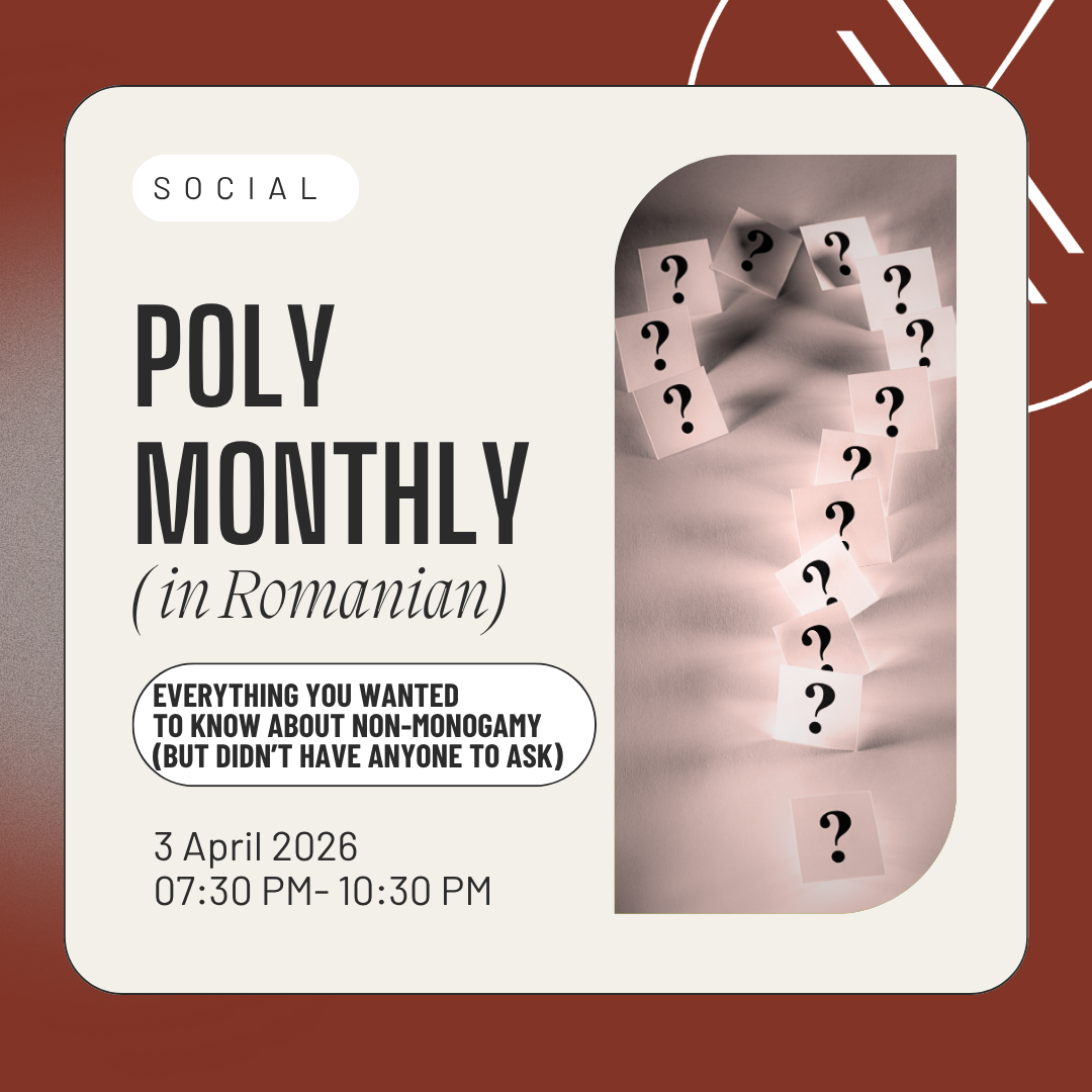 Home Our Events - InFLUX Community Events Consent Workshop Not Required Educational Events Poly Events Poly Monthly: Everything You Wanted to Know About Non-Monogamy (But Didn’t Have Anyone to Ask) (in Romanian)