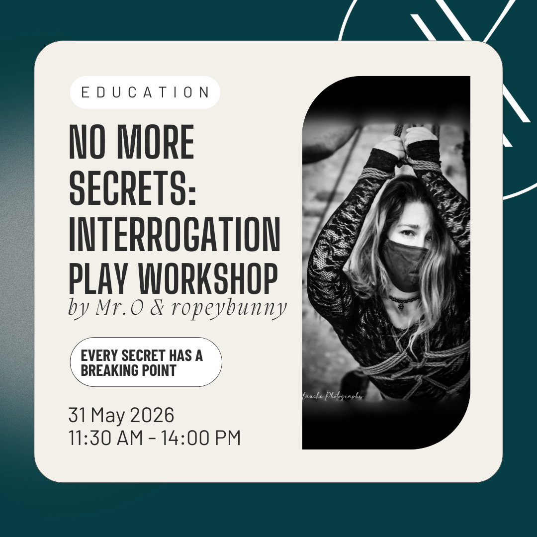We’ll look at various styles of interrogation, both for people we know well and for those who are new to us. The focus is on how to build a scene with intention, balancing intensity, communication, and safety throughout.